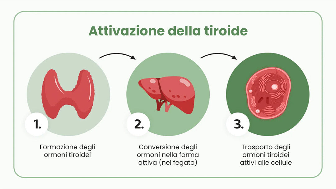 Una volta che l'ormone TSH invia il segnale dalla ghiandola pituitaria, il processo ha inizio.