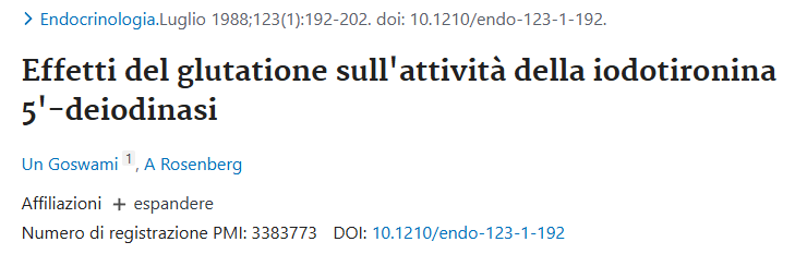 Effetti del glutatione sull'attività della iodotironina 5'-deiodinasi: https://pubmed.ncbi.nlm.nih.gov/3383773/